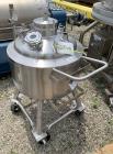 Used Stainless Technology (ABEC) Reactor, 55 Liter (14.5 Gallon), 316L Stainless Steel, Vertical. Approximately 18" diameter x 9" straight side, dished top and bottom. Internal rated 85/-15 psi at -20 to 350 degrees F. 304L Stainless steel jacket rated 150/-15 psi at -20 to 350 degrees F (shell: dimple, bottom head: half pipe). Openings top: 1", (3) 1-1/2", (2) 3", 6". Approximate 1" center bottom outlet. Includes Spray Ball, provision for bottom entering agitator. Mounted on (4) legs with casters. Serial # 6510, National Board # 242. Built 2006.
