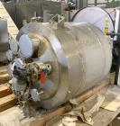 Used Northland Stainless Reactor, Approximate 200 Gallon, 316L Stainless Steel, Vertical. Approximately 37" diameter x 36" straight side. Dished top and Bottom. Shell rated 100 psi/FV at -20 to 500 degrees F. 304L Stainless steel jacket rated 100 psi/FV at -20 to 500 degrees F. Openings Top: 12" x 8" handhole with hinged cover, 8" for agitator, 6", 4", (2) 3", (2) 2". 3" Center bottom outlet. Includes top entering agitator shaft with (2) 3 blade propellers, requires drive motor. (3) Sidewall baffles. Side lug mounted. National Board# 1227, Serial# 915485, Built 1992.