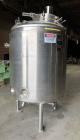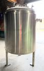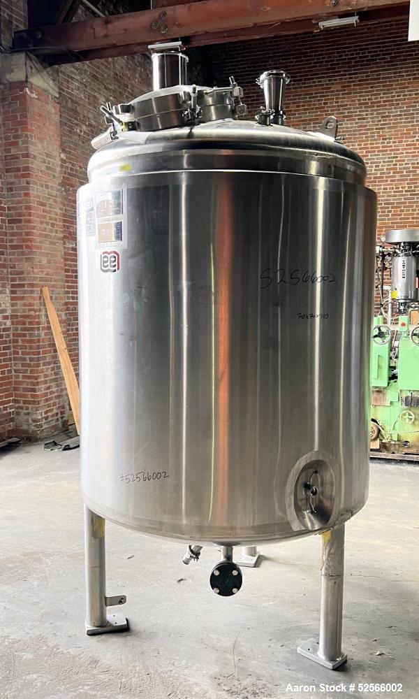 Used Lee Industries Reactor, 528 Gallon (2000 Liter), Model 2000 "DP", 316L Stainless Steel, Vertical. 54" internal diameter x 60" straight side, dished top and bottom. Polished internal designed for vacuum service and rated 75 psi at -20 to 329 degrees F. Stainless steel dimple jacket designed for vacuum service and rated 125 psi at -20 to 329 degrees F. Approximate openings top: 20" manway with cover, 6" diameter on cover, (3) 3", (2) 2", (4) 1-1/2", 3/4". 1-1/2" Center bottom outlet, 2" offset bottom outlet, 12" discharge height. includes (1) Spray ball. Provision of bottom entering agitator. Mounted on (3) stainless steel legs. Serial # 27989-4, National Board# 9457.