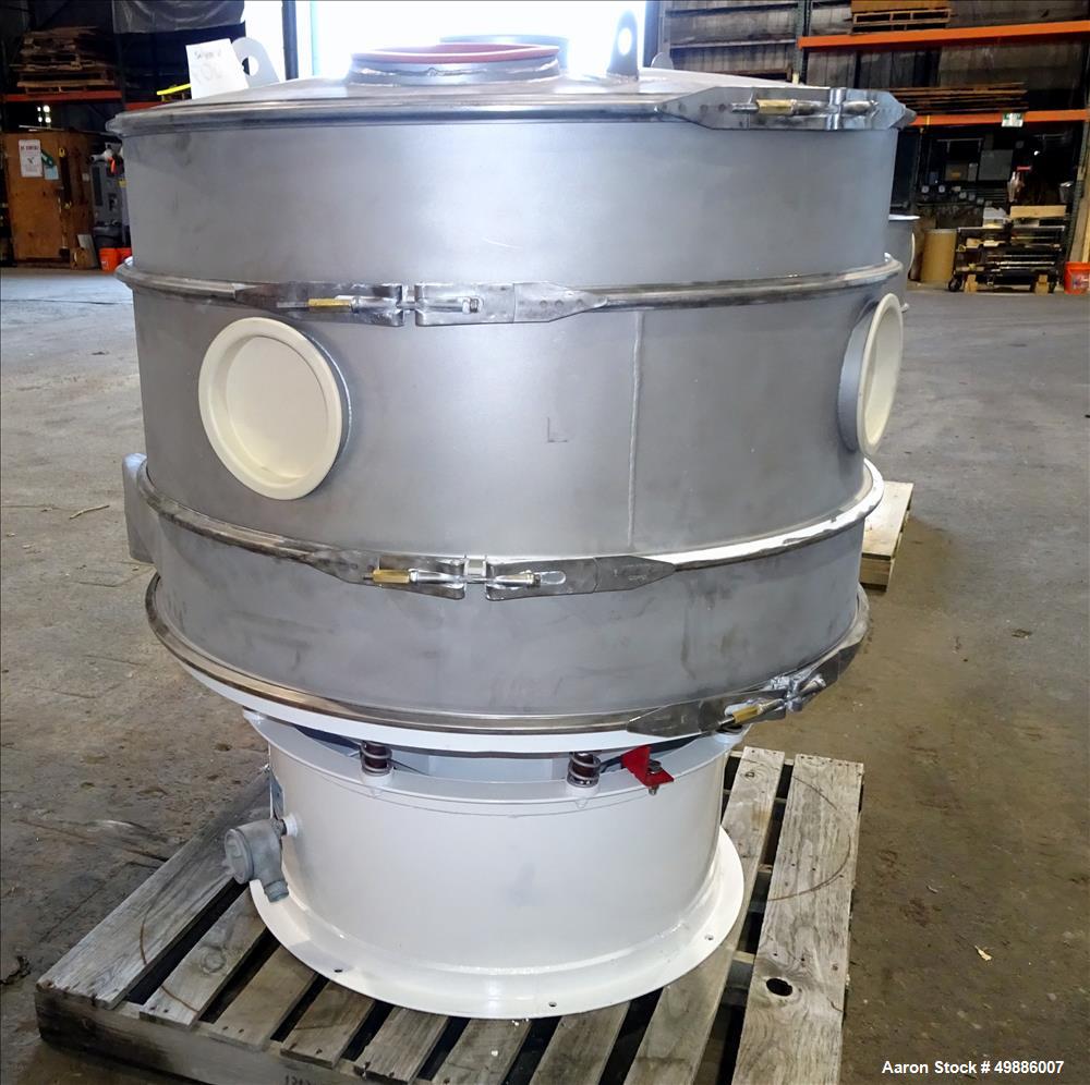 Used Macon 48" Diameter Vibratory Screener, 304 Stainless Steel. Double deck, 3 separation. Driven by a 2.5hp, 3/60/460 volt, 1160 rpm motor. Mounted on a carbon steel base. Serial# 4888C-169, built 2003.
