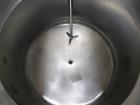Used Lee Industries Pressure Mix Tank, 250 Liter, Model 250 LDBT, 316L Stainless Steel, Vertical. Approximate 30" diameter x 19" straight side, dished top and bottom. Internal rated 35 psi at 275 degrees F, vacuum internal. Top entering 3-blade turbine agitator, requires motor/drive. Openings top: 14" with cover, (1) 3", (6) 1-1/2". 1-1/2" Center bottom outlet, approximate 6-1/2" discharge height w/o valve, 2-1/8" with valve. Mount on (4) legs with casters. National board# 4384, Serial# B, Built 1989.