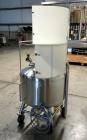 Used Sharpsville Pressure Mix Tank, 200 Liter, 316L Stainless Steel, Vertical. Approximate 30" diameter x 14" straight side, dished top and bottom. Internal rated 40 psi at -20 to 300 degrees F, vacuum internal. Bottom entering 4-blade turbine sanitary agitator, driven by a 1/4 hp, 3/60/230/460 volt, 1650 rpm motor. Openings top: 8" with cover, (1) 2", (3) 1-1/2". 1-1/2" Center bottom outlet, approximate 10" discharge height. Mounted on (4) legs with casters. National Board# 6512, Serial# 7512, Built 2008.