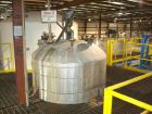 Unused-Used: 2500 gallon stainless steel mixing tank. Dish 144" side wall x 72" diameter, 19' overall height. 3 hp motor @ 100 rpm, 3" mix shaft dual blade turbine agittor. Inlets 2", 4", 8" and 10". (18) 2.5" diameter internal coil. Sidewall baffles.