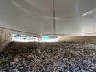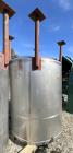 Used DCI 1,000 Gallon Tank, Stainless Steel, Vertical. Approximate 65" diameter x 68" straight side. Flat open top, dished bottom. Openings Side: 2-1/2" threaded. 2-3/4" NPT Center bottom outlet with approximate 20" discharge height. Mounted on (4) carbon steel legs. Serial# 79-C-24840-5.