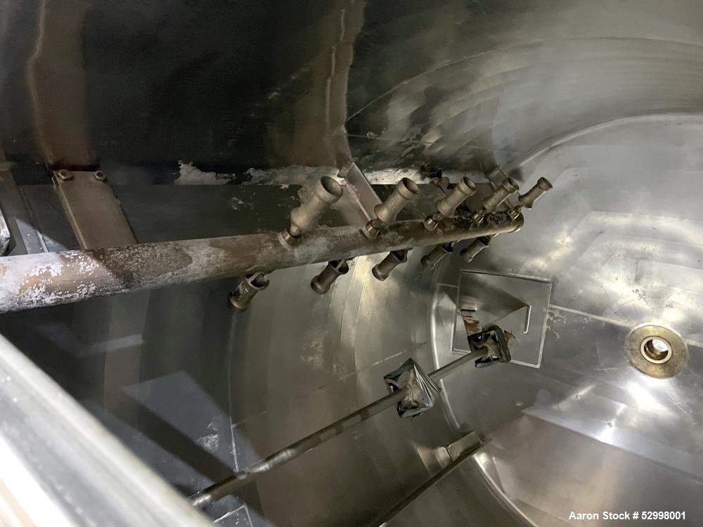 Used Lee Industries Jacketed Tank, Model 2500UDBT, 2500 Gallon, Hastelloy C276, Vertical. Approximate 84" diameter x 96" straight side. Flat top with (2) 1/3 covers, dished bottom. Uniflow 304 stainless steel jacket on sidewall & bottom head rated 100 psi at -20 to 338 degrees F. Top agitator bridge with offset dual 4-blade turbine on 1-1/2" diameter shaft, requires motor. Openings Top: 7-3/4", 4" with 1-1/2" opening for shaft, (3) 3", 3-1/2", (2) 2". 3" Center bottom outlet with valve. (4) Sidewall baffles. Mounts on 4 side lugs. Serial# B5773A, National Board# 4974.