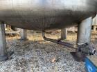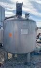 Used Mix Tank, Approximately 1000 Gallon, 304 Stainless Steel, Vertical. Approximate 72" diameter x 46" straight side, dished heads. Top offset Lightnin Agitator, Model V6C110, Serial # 93/B49610-01, driven by a 1.50hp, 3/60/230/460 volt, 1725 rpm, XP motor. No agitator shaft. Openings Top: 24" manway with cover, 3", (3) 1-1/2", 6" for agitator. 2" Center bottom outlet with 12" discharge height. Includes (3) baffles. Mounted on (4) stainless steel legs. No Manufacturers Tag