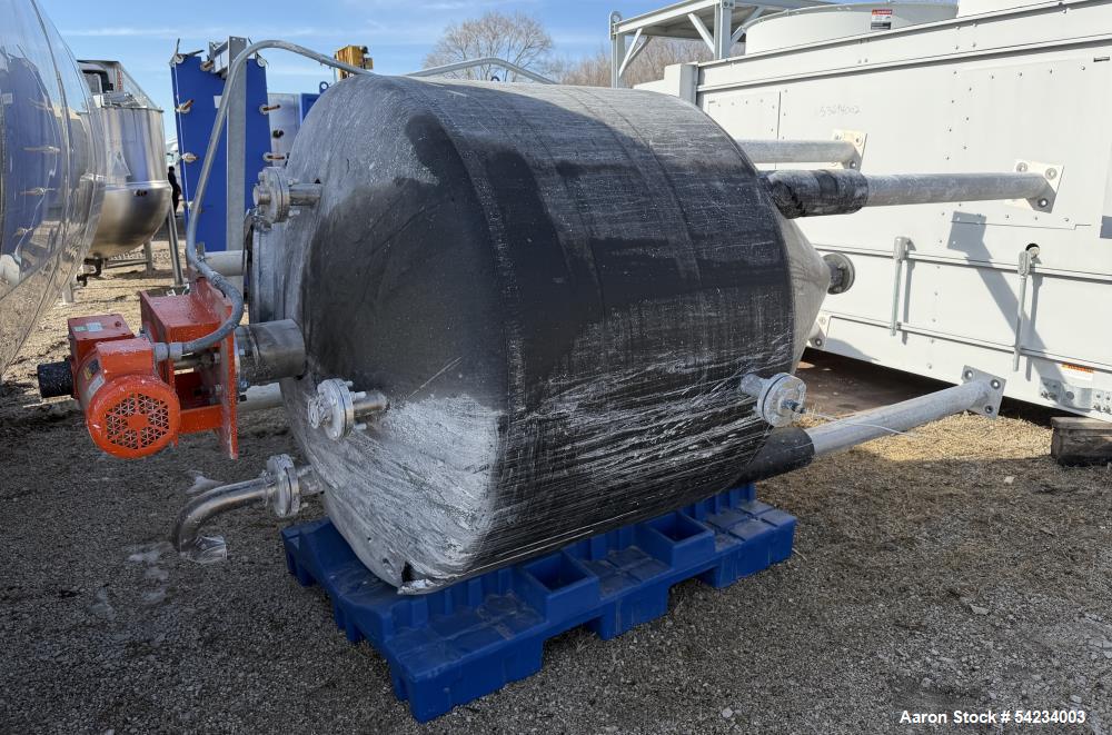 • Aprox. 800 Gal. Dome Top, Dome Bottom S/S Tank, Single Wall, with(2) Vertical Agitator Shaft (Note: ...