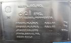 Used DCI WFI Storage Pressure Tank, 500 Gallon, 316L Stainless Steel, Vertical. 53-3/4” Diameter x 44” straight side, dished top and bottom. Internal rated +30/-15 psi at 250 degrees F. Openings top (2) 2” tri-clamp, (3) 3” tri-clamp, 4” tri-clamp, side 2” tri-clamp, 16” x 20” oval man way with cover. 3” Tri-clamp center bottom outlet. Mounted on 4 stainless steel legs.