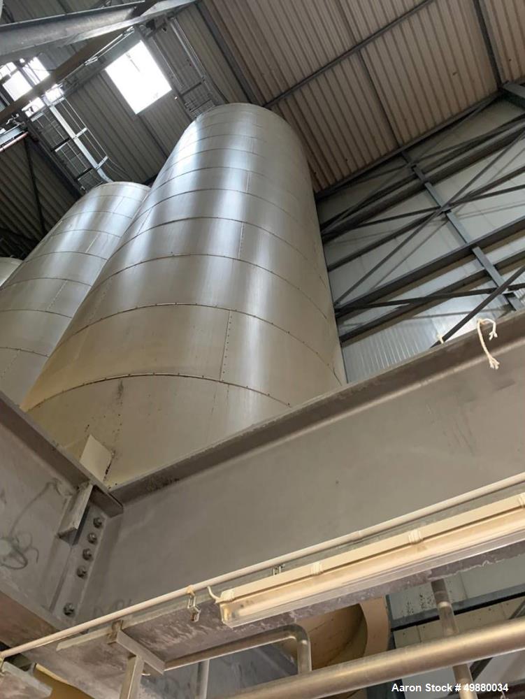 Holvrieka vertical tank, Total capacity 33597 gallon/127000 liter, working capacity 33333 gallon/126000 liter. 304 stainless steel on product contact parts. Jacketed rated for 30 PSI (2 bar) 124" dia. x 462" high (3800 mm dia. x 14195 mm high). Insolated 3.9" (100 mm). Weight 9.5 tonnes. New 1992.