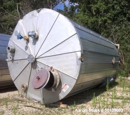 Used Apache Stainless Equipment Storage Tank, 10,500 Gallon, 304 Stainless Steel, Vertical. Approximate 120" Diameter x 204" High. Slight Cone top and dished bottom. Design Pressure 2.5 psi at 350 degrees F. Mounted on (4) legs. Built 2007.