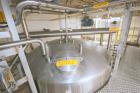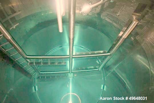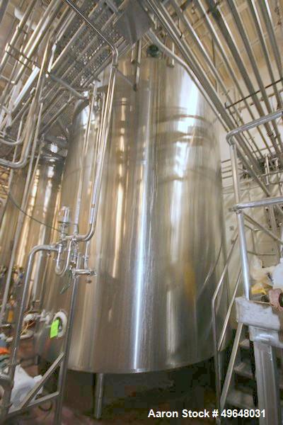Used DCI 7,500 Gallon Jacketed Mix Tank, 316L Stainless Steel. 22 gallon Jacket MAWP 150/FV PSI at 100F. Top mounted 7.5HP motor 460/60/3 with Anchor-sidesweep agitation. Dome top, sloped bottom. 18" Top Manway. (6) Leg mounted. 125"OD x 229"OAH. Serial # JS01249-A. Built 2000. Weight 8058 lbs. Past use Cheese plant. (LOCATED IN CHAMPAIGN, IL)