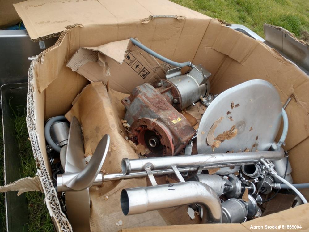 Used DCI Jacketed Silo, 10,000 Gallon, Stainless Steel, Vertical. Approximate 120" Diameter X 208" straight side. Dished top, sloped bottom. Dimple jacket rated 150 psi at 100 degrees F, 75 square foot. Side bottom alcove with manway and side bottom outlet. Serial# 87-D-35636.