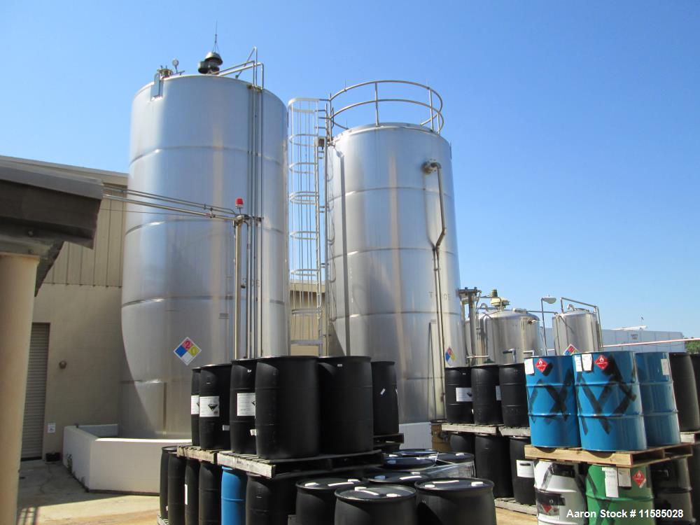 Used 20,000 Gallon Feldmeier Vertical 304 Stainless Steel Storage Tank. 2B Finish. 142" diameter x 25' straight side. Flat sloping botttom. Dished top. Built 1999. Approx. 27'-2 3/4" Overall Height. 5650 lbs. 24" Side Manway. Misc openings. Drawing available.