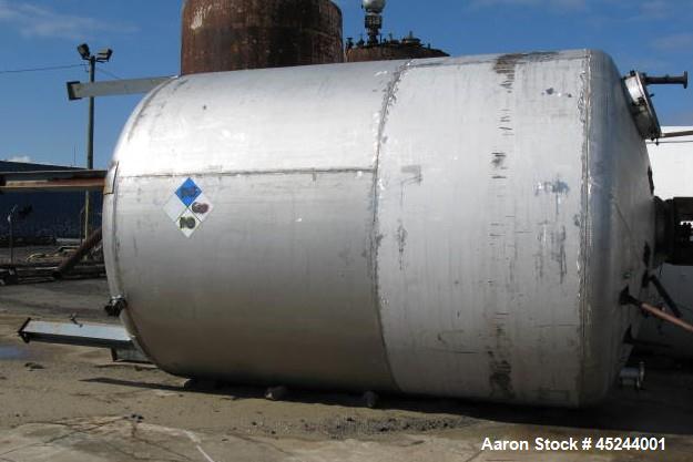 Used Master Craft, 10,000 gallons vertical T304 stainless steel tank, heated with internal pipe coil. Tank is rated for 15 psi at 250 degree F. internal. Has bank of full coil, approximately 10 turns of 3" sch 10 pipe, rated 150 psi at 250 degree F. Shell is 11 diameter x 13 6" high, dished top and bottom heads. Shell and heads are 3/8" thick. Fittings on top (6) 3", (2) 2", (1) 1 ", (2) 3" coil in & out, (1) 8", (1) 1", (1) 16" agitator mount, (1) 22" manhole. Bottom has (1) 4" pad. Built 1973. National Board # 9, S/N 2973-2. Has a Pro-Quip Agitator 40TSK20, with a 40 hp 3/60/230-460V XP motor. Shaft has a twin turbine agitator.