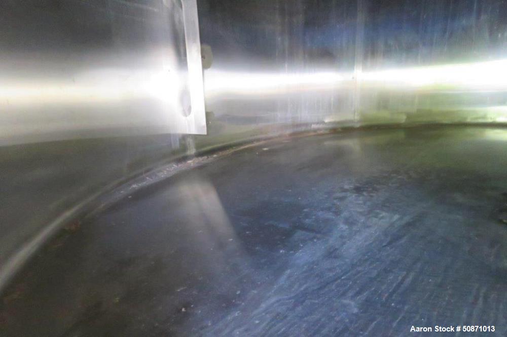 UNUSED- APV Crepaco 10,000 Gallon Storage Tank, 304 Stainless Steel, Vertical. Approximate 120" diameter, dished top, sloped bottom (3/4" per foot). 3" Insulation on sidewall and head, carbon steel exterior sheathing. Bottom alcove with 16" x 20" manway with swing cover, 2" side bottom outlet (approximate 33" discharge height). (2) Sidewall baffles, (2) Spray balls. 3A design approved. Mounted on (6) legs. Built 1995. According to owner, the tanks were never used in production and only show rust on exterior due to sitting outside.** LOADING COST IS $1,500 *** Tank is in Vermont.